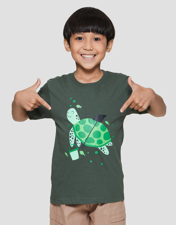 Little M Turtle Print Kaos Lengan Pendek Anak Laki-laki