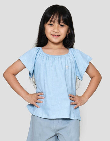 Little M Gathered Lengan Flare Kaos Lengan Pendek Anak Perempuan