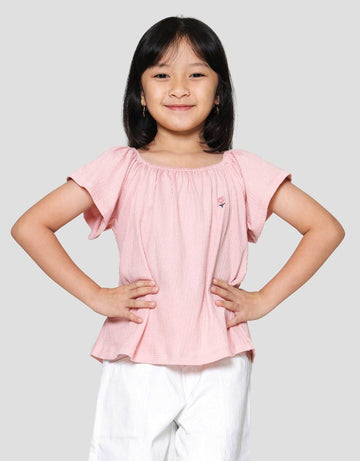 Little M Gathered Kaos Lengan Pendek Anak Perempuan