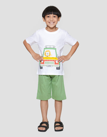 Little M Lion Driving Print Pakaian Setelan Anak Laki-laki