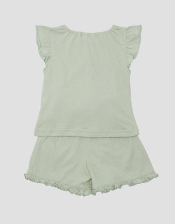 Little M Print Ruffles Embro Pita Pakaian Setelan Anak Perempuan
