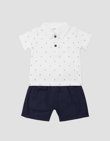 Little M Polo Lacoste Short Jangkar Setelan Anak Laki-laki