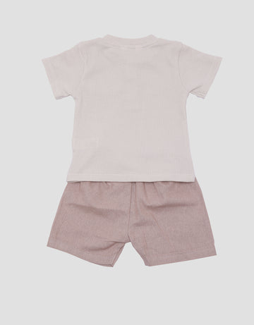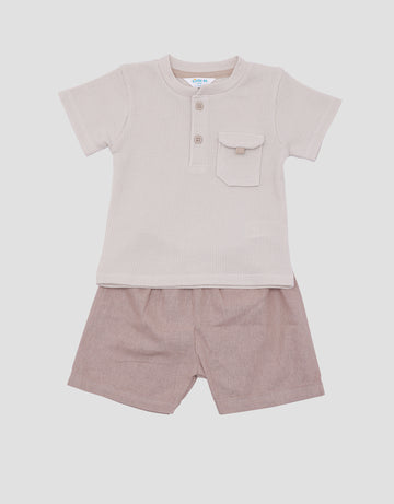 Little M Raglan Waffle With Button Baju Set Anak Laki-Laki
