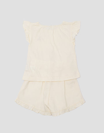 Little M Print Ruffles Embro Flowers Setelan Anak Perempuan