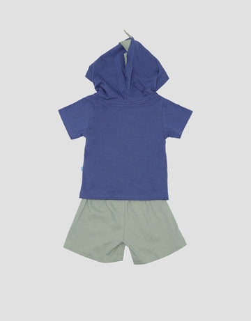 Little M Print Dino Tail Baju Setelan Anak Laki-laki