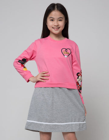 Disney Minnie Cute Ever Long Sleeve Midi Dress Pinggang Karet
