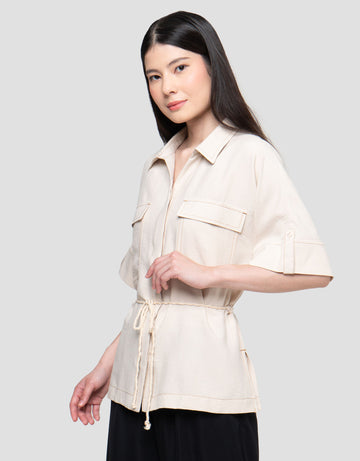 Connexion Linen Slub Outer Rolled Up Kemeja Wanita