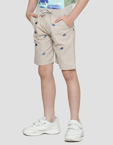 Little M Woven Pinggang Rib Bordir Celana Pendek Anak Laki-laki