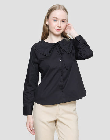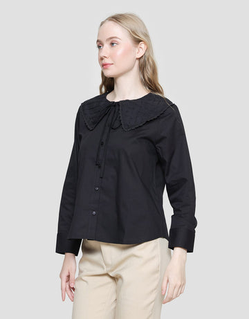 Details Eyelet Collar Kemeja Lengan Panjang Wanita
