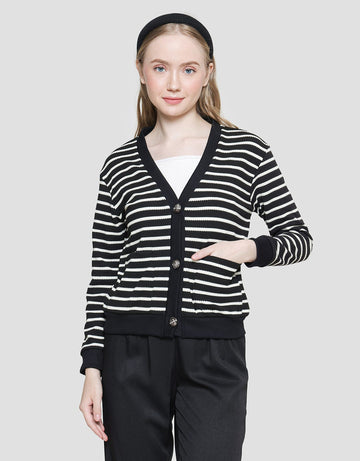Details Stripes Knit With Korean Button Kardigan Wanita