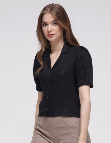 Details Crop Plain Kemeja Lengan Pendek Wanita