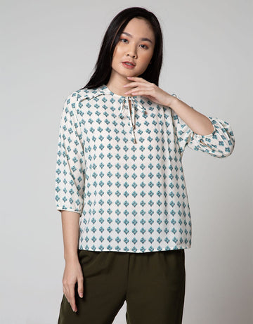 St. Yves Rayon Twill Printed Tunic With Soft Handfill 3/4 Blouse Wanita