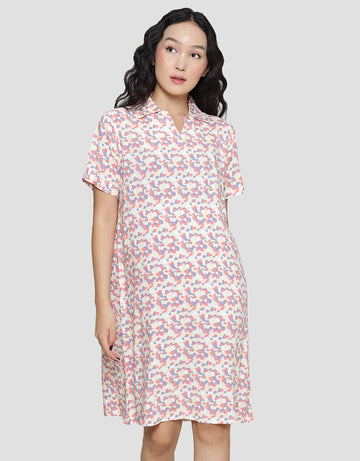Nevada Polka Mix Midi Dress Lengan Pendek Wanita