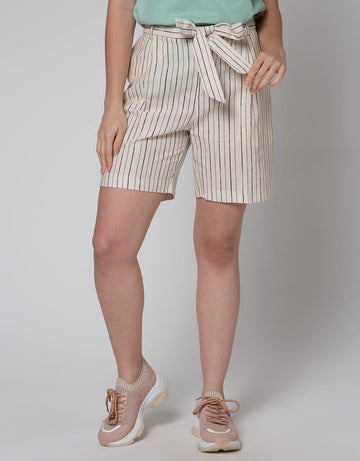 Connexion Short Pants Stripes With Self Belt Tie