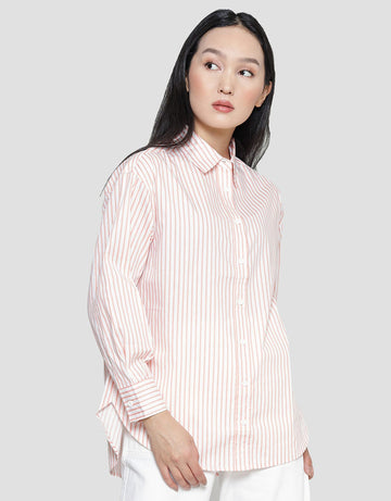 Nevada Stripe Woven Kemeja Lengan Panjang Wanita