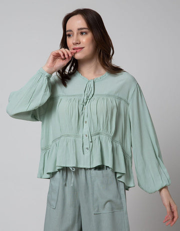 St. Yves Folded Sleeve Kemeja Lengan Pendek Wanita