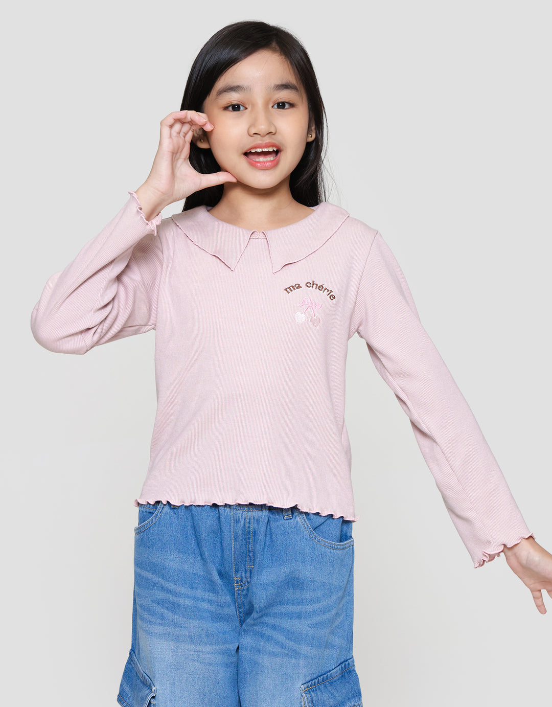 Nevada Rib Bordir Cherrie Kaos Anak Perempuan