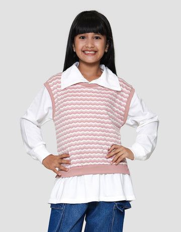 Nevada Fake 2 Pcs Kombinasu Tekstur Sweater Anak Perempuan