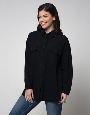 Nevada Long Sleeve Shirt Woven Top Reg Brushed Cotton Twill
