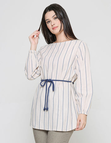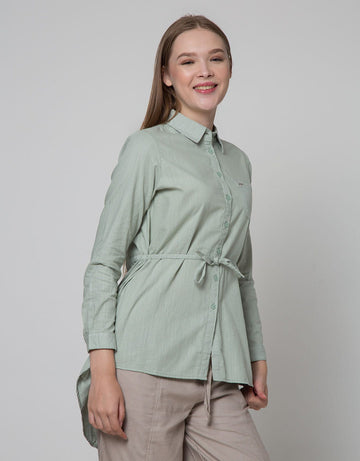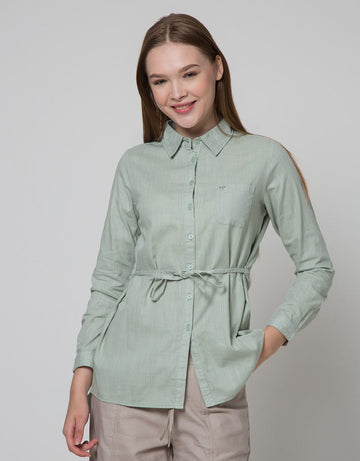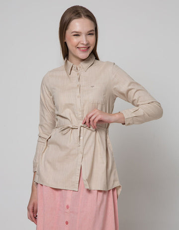 Annisa Kemeja Lengan Panjang Textured Basic With Belt Wanita
