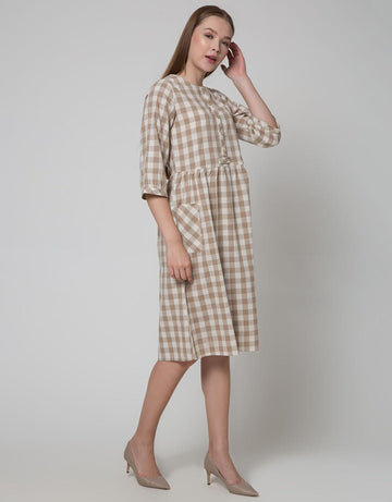 St. Yves Collar Linen Washing Midi Dress Wanita