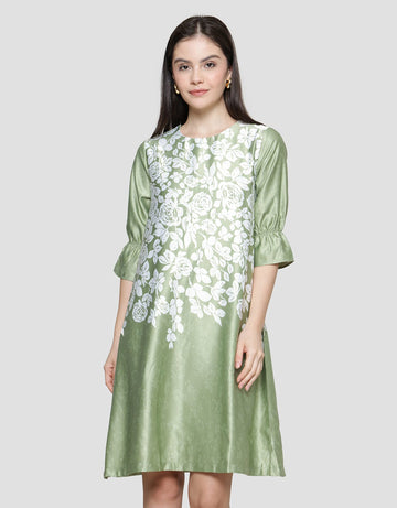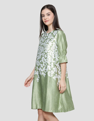 Nevada Little Krisan Midi Dress Lengan Pendek Wanita