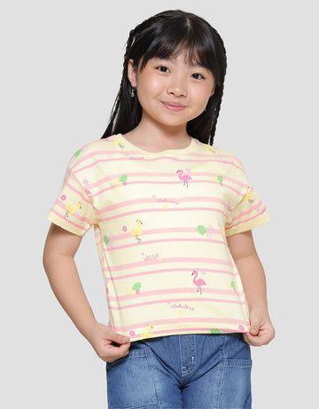 Little M Flamingo Stripe Kaos Lengan Pendek Anak Perempuan