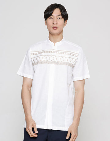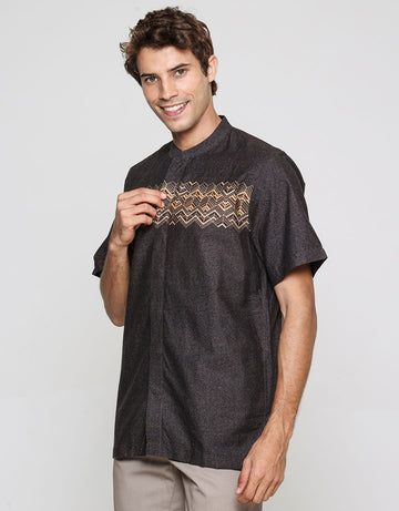 Cole Bordir Dada Kemeja Koko Lengan Pendek Pria