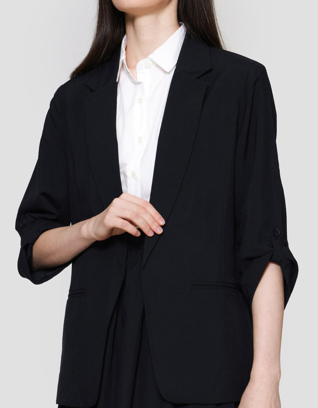 - Detail bukaan depan, rolled up sleeve