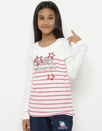 Little M Stripe Sablon Tengah 1 Kaos Lengan Pendek Anak Perempuan