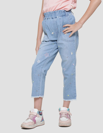 Little M Paperbag Kantong Depan Bordir Sebar Celana Denim Anak Perempuan