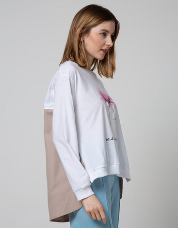 Details Long Sleeve Blouse Knit With Combo Fabric And Print
