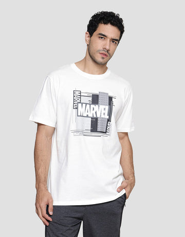 Marvel New Logo Marvel Black And White Kaos Lengan Pendek Pria