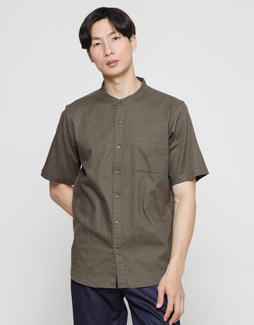 Cole Filafil Mandarin Collar Kemeja Lengan Pendek Pria