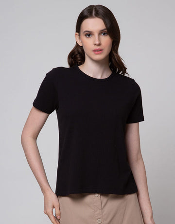 Connexion Rib Neci Kaos Lengan Panjang Wanita