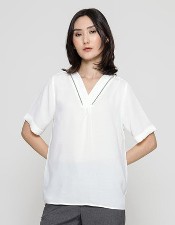 St. Yves Vneck And Shirring Gynela Crushed 3/4 Blouse Wanita