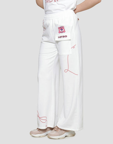 Disney Wide Leg Striped Tape Print Stitch Celana Panjang Wanita