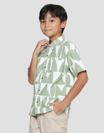 Nevada Print Abstrak Kemeja Koko Lengan Pendek Anak Laki-Laki