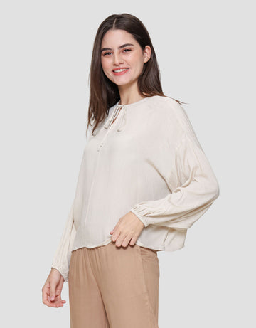 St Yves Crinkle Viscose Loose Tie Neck Blouse Wanita