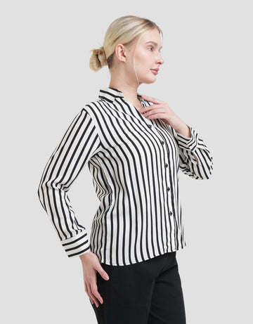 St. Yves Viscose Stripe V Neck Kemeja Wanita