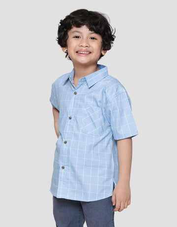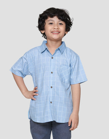 Little M Kotak Blue Mm Wash Kemeja Anak Laki-laki