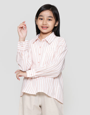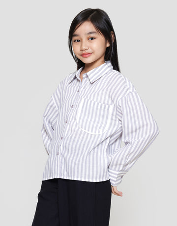 Nevada Salur Kantong Piping Bordir Stripes Kemeja Anak Perempuan
