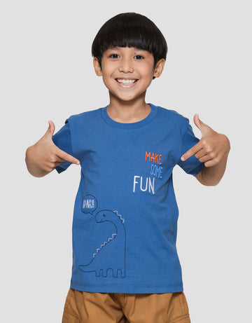 Little M Solid Combed Stitch Dino Kaos Lengan Pendek Anak Laki-laki