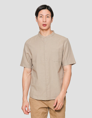 Suko Mandarin Collar Kemeja Lengan Pendek Pria