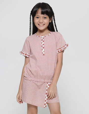 Little M Baju Set Skort Anak Perempuan Kotak Kombinasi
