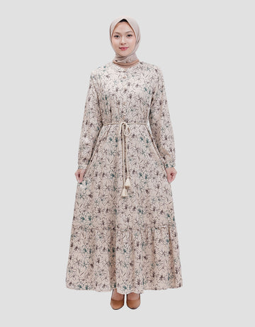 Annisa Printed Drawstring Maxi Dress Wanita