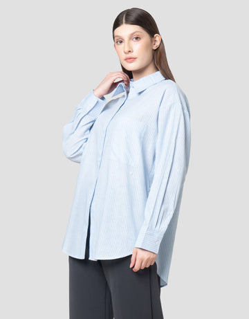 Annisa Stripe Printed With Adjustable Button Kemeja Wanita