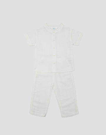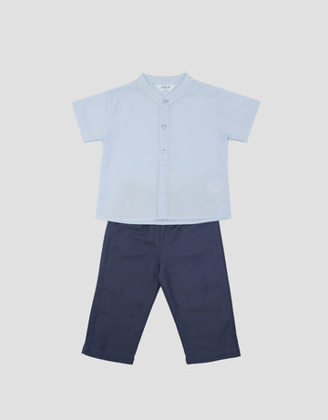Little M Woven Polos Bahan Slub Setelan Baju Muslim Anak Laki-laki