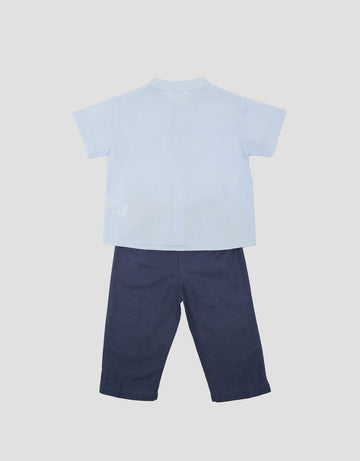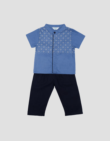 Little M Seasonal Slub Bordir Klep Kancing Setelan Baju Muslim Anak Laki-laki