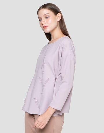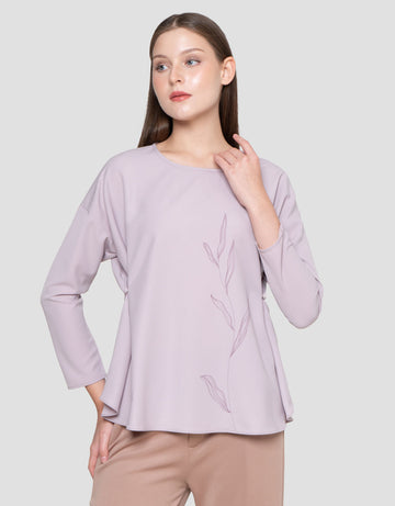 Suko Motif Asimetris Lengan Panjang Blouse Wanita